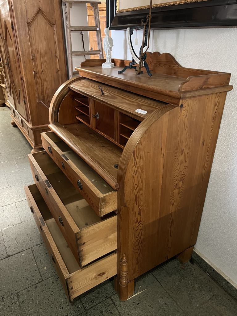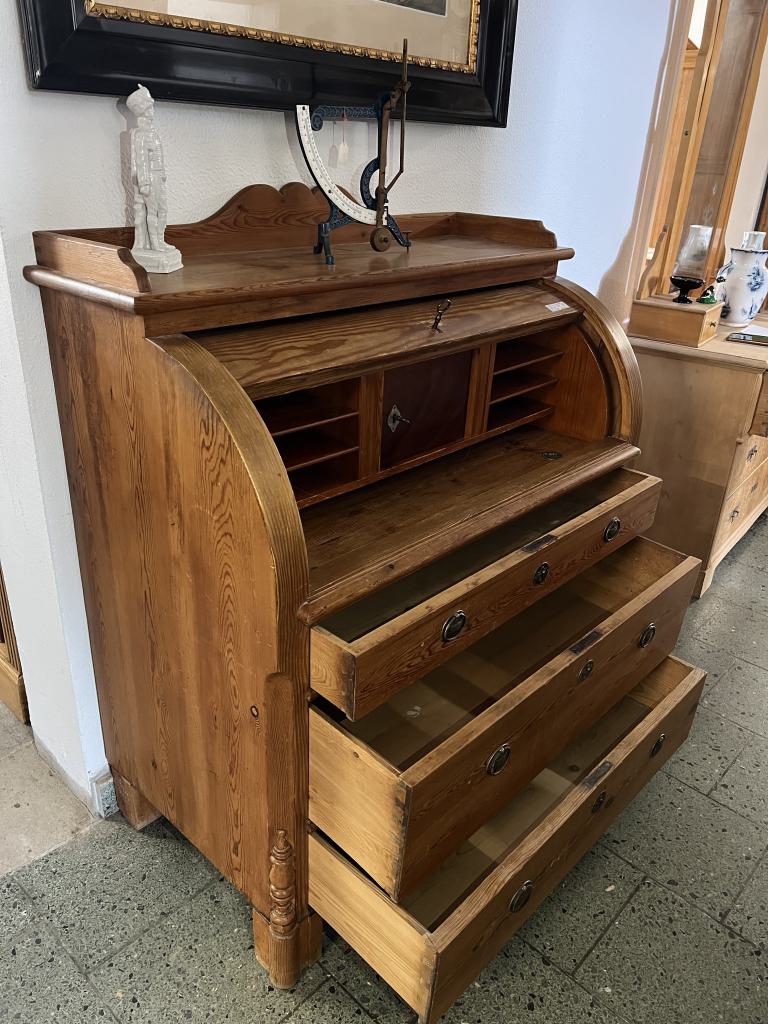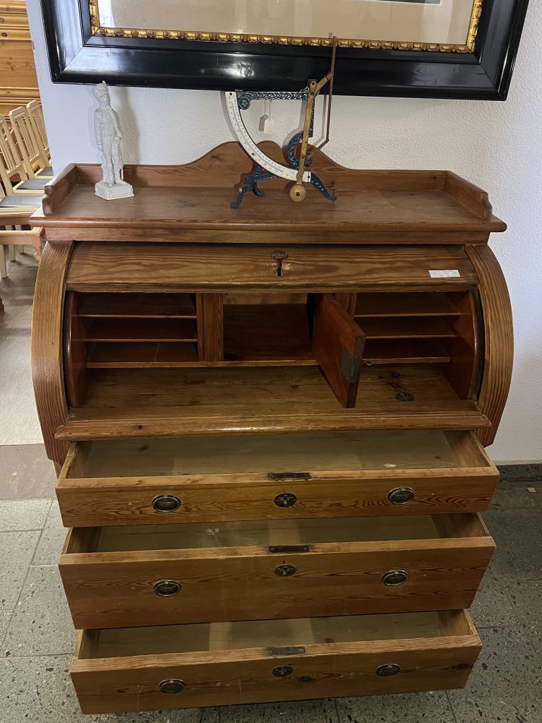 Wunderschöner, klassischer Seeländer Sekretär mit charakteristischer Rollfront und viel Stauraum. Gefertigt aus massivem Holz, überzeugt dieses Möbelstück durch seine warme Ausstrahlung und zeitlose Eleganz. Hinter der Rollklappe verbirgt sich eine praktische Schreibfläche sowie Fächer für Ordnung und Übersicht. Die geräumigen Schubladen bieten zusätzlichen Platz.